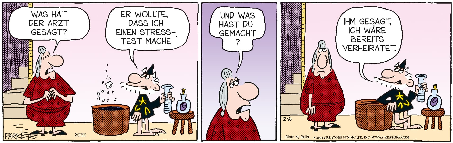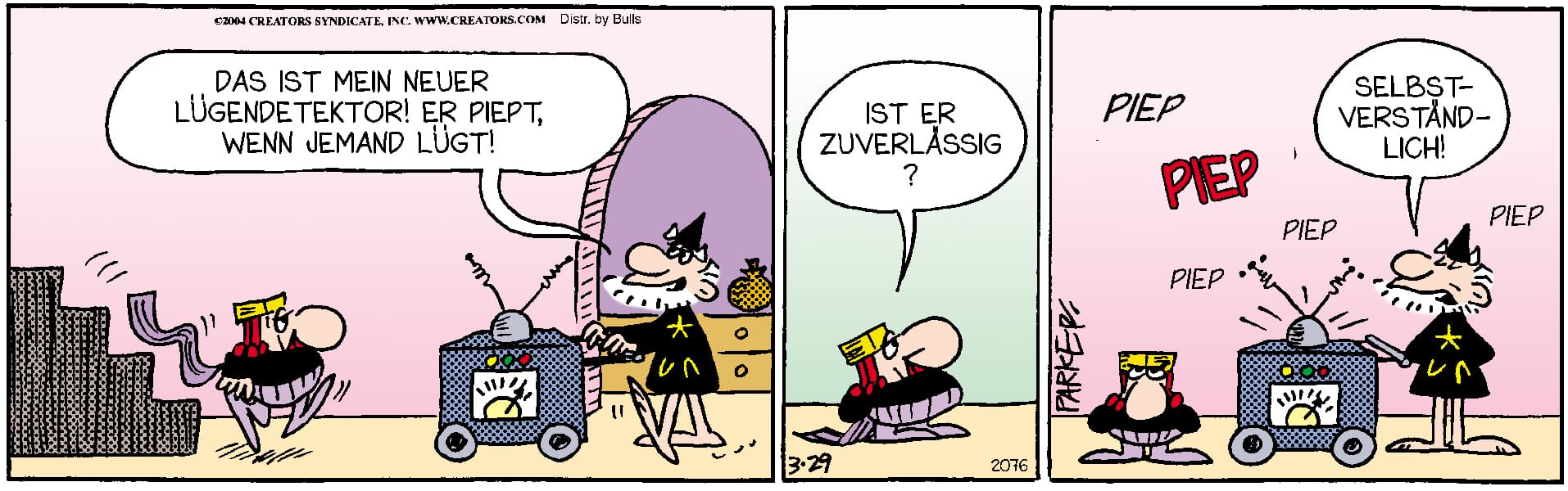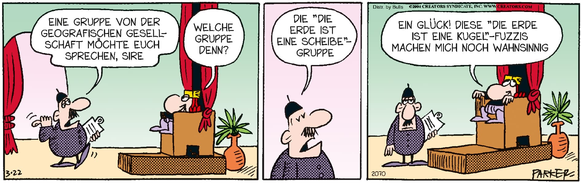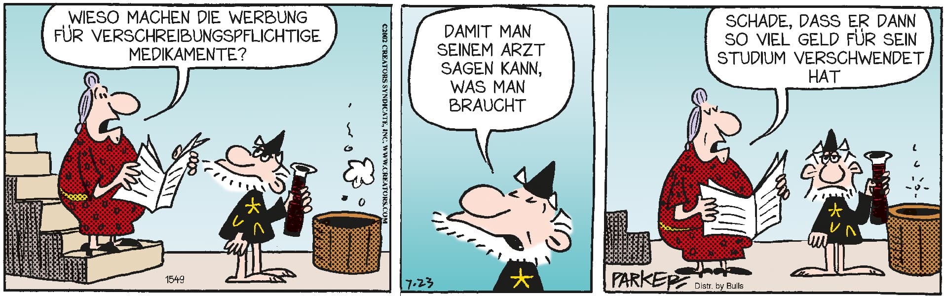 Die Entwicklung von der Steinzeit bis ins Mittelalter wurde auf sechs Jahre verkürzt, die Erstveröffentlichung von Magnus der Magier (Original: „The Wizard of Id“) fand im Jahr 1964 statt. Allzu genau darf man die mittelalterliche Kulisse aber nicht nehmen; wenn der Gag es verlangt, kann der unterdrückte Bauer schon mal genervt vor dem Geldautomaten stehen oder sich über das langweilige Fernsehprogramm beschweren.