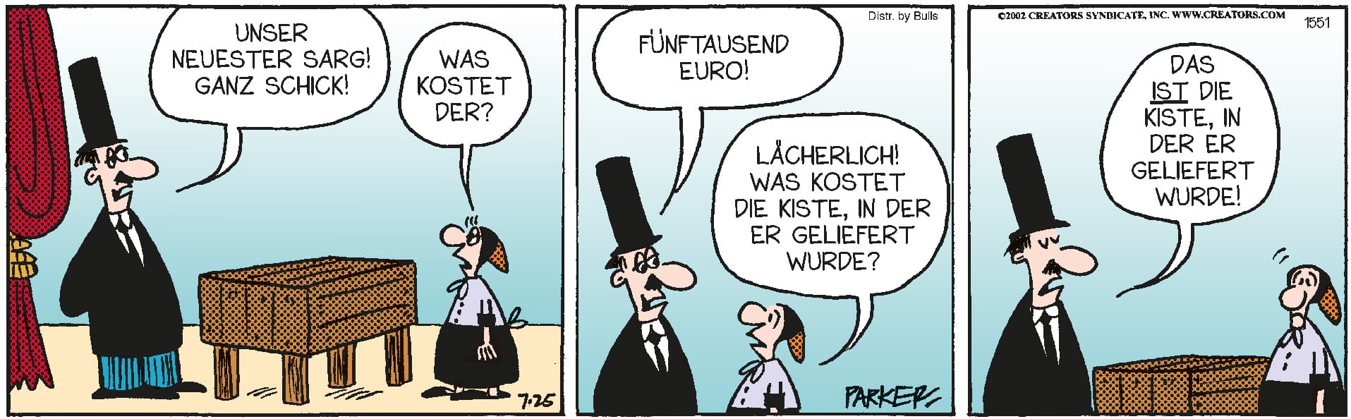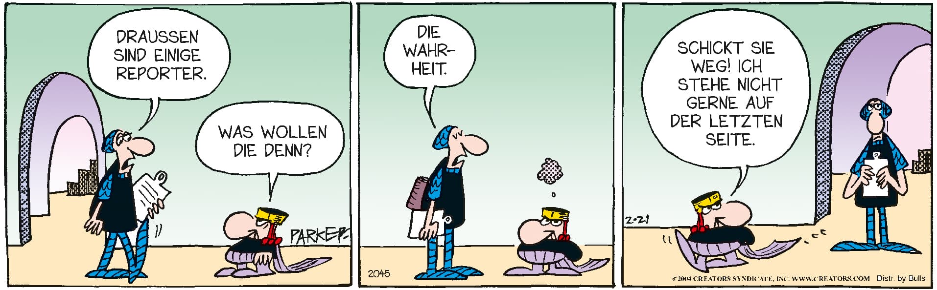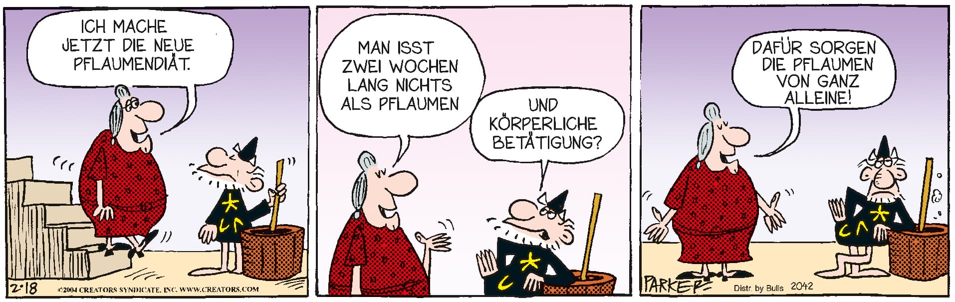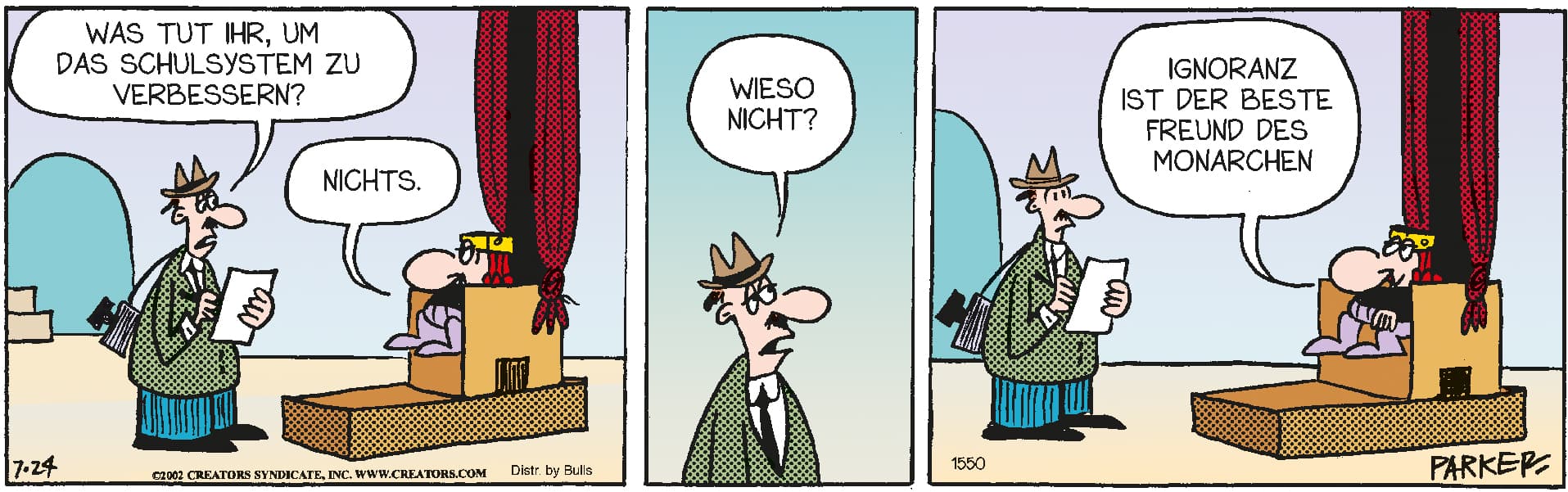 Die Entwicklung von der Steinzeit bis ins Mittelalter wurde auf sechs Jahre verkürzt, die Erstveröffentlichung von Magnus der Magier (Original: „The Wizard of Id“) fand im Jahr 1964 statt. Allzu genau darf man die mittelalterliche Kulisse aber nicht nehmen; wenn der Gag es verlangt, kann der unterdrückte Bauer schon mal genervt vor dem Geldautomaten stehen oder sich über das langweilige Fernsehprogramm beschweren.